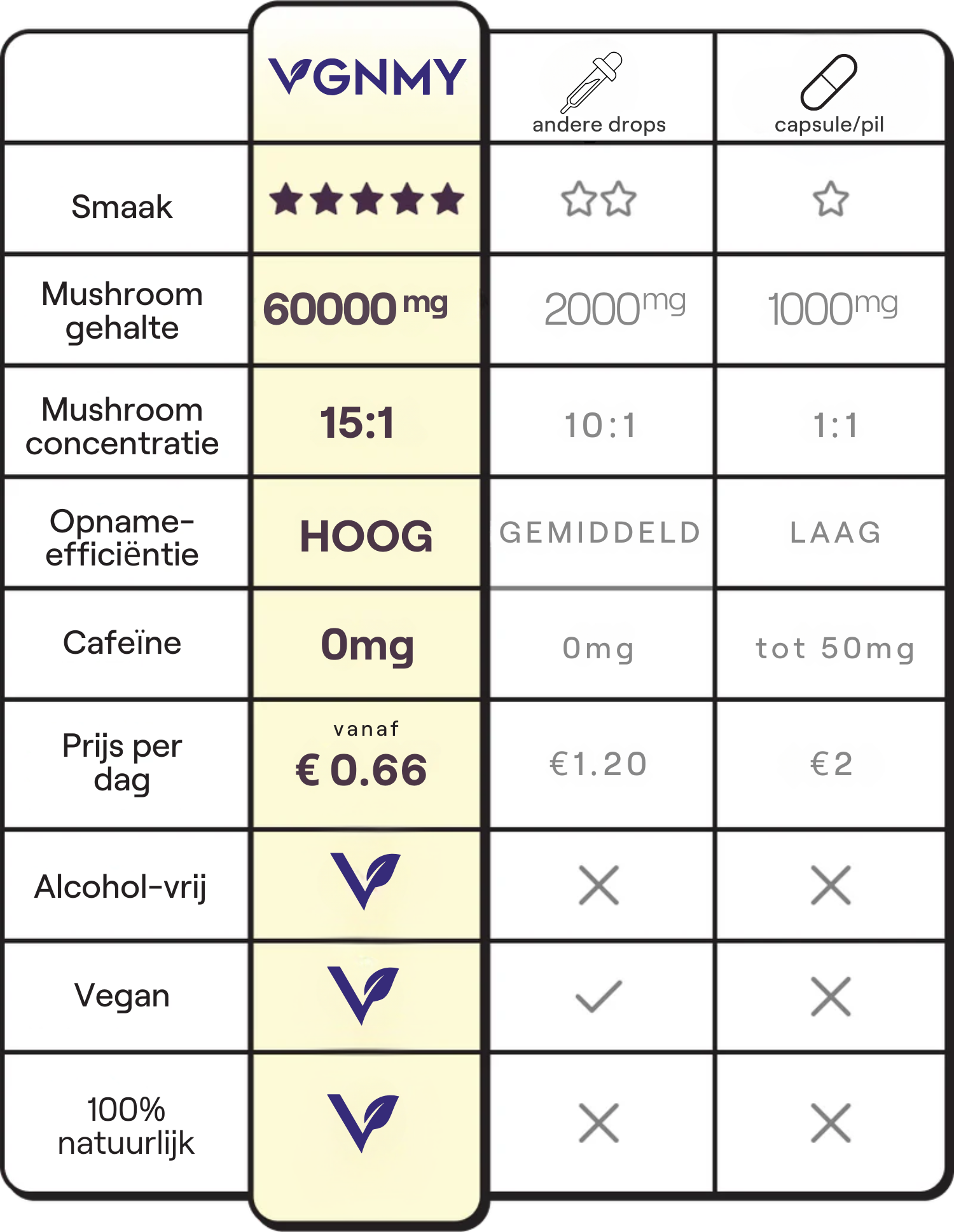 De VGNMY Lion’s Mane Drops zijn ontwikkeld voor wie kiest voor eenvoud, flexibiliteit en transparantie in supplementgebruik.