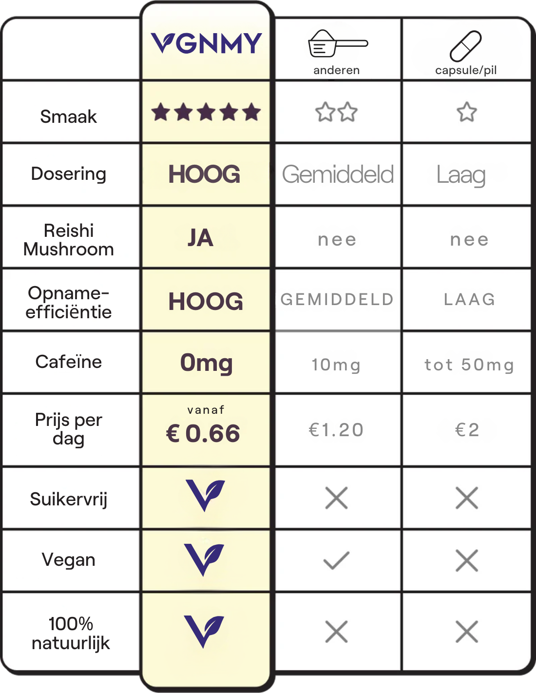 De genoemde effecten zijn gebaseerd op toegestane gezondheidsclaims van vitamines en mineralen. Reishi is toegevoegd als ingrediënt zonder daaraan gezondheidsclaims te koppelen. Voedingssupplementen zijn geen vervanging van een gevarieerde voeding en een gezonde levensstijl.